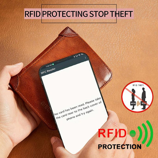 Men's Vintage Top Grain Cowhide Leather Trifold Wallet with RFID Protection